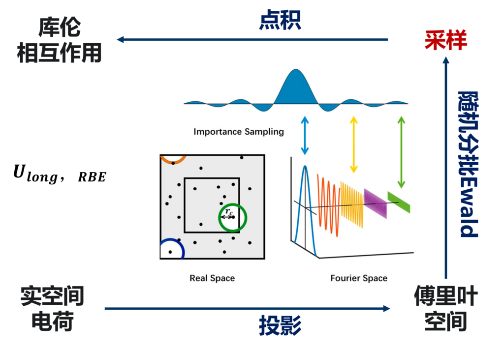 采用随机分批算法的分子动力学模拟(RBMD)。在傅里叶空间内对电荷相互作用进行采样,从而实现对千万原子级带电体系,诸如聚合物-锂盐-填料体系的加速模拟。